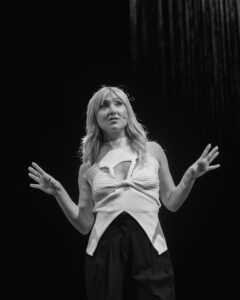 Auf der Bühne behandelt sie mit Freiheit und Schalk Themen wie Liebe, Weiblichkeit und zwischenmenschliche Beziehungen. Zwischen Lachen und ernsteren Momenten verbindet ihre Show Energie, Aufrichtigkeit und einen zeitgenössischen Blick auf die Gesellschaft.