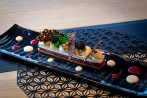 Un jeu de textures et de saveurs tout en équilibre, à savourer au Purple Lounge pour conclure la soirée avec légèreté.